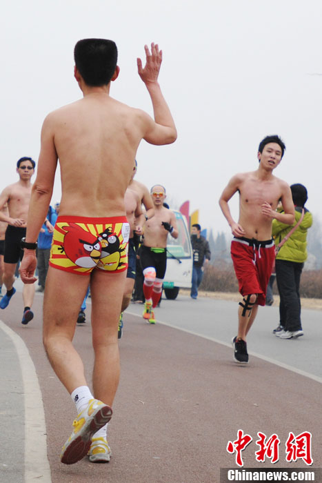 Lustiger Laufwettbewerb: "Nackte Schweine" rennen durch Beijing