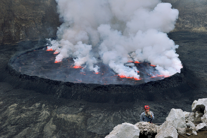 Im Juni 2010 brach daher ein Team aus Wissenschaftern und Abenteurern zu einer Expedition in die Tiefen des Vulkans Nyiragongo auf. Der Fotograf Olivier Grunewald hat dabei zahlreiche Fotos des Lavasees gemacht – viele von ihnen aus nur einem Meter Entfernung zum Ufer.