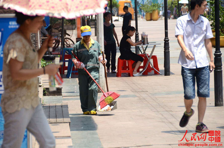- Der schwüle Sommer des Jahres 2013 wird als "heißester Sommer in China seit 1961" in die Geschichte eingehen. Diejenigen, die berufsbedingt im Freien arbeiten müssen, sind am meisten gefährdet.