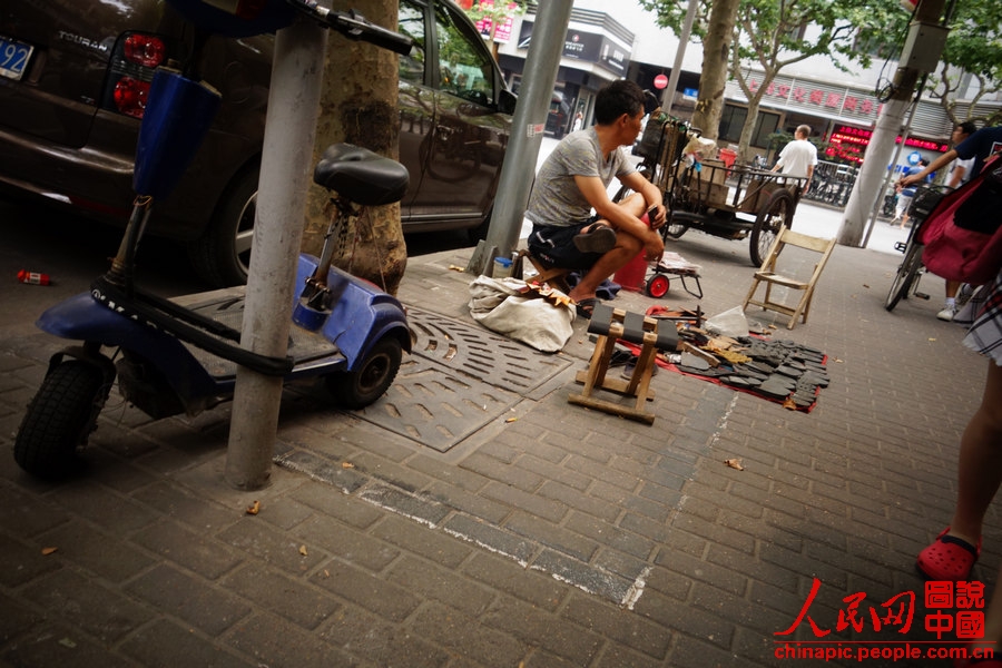 Ein Schuster – Schuhe reparieren bei 40,6 Grad – Shanghai.