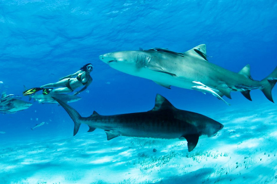 Tigerhaie sind keine Menschenfresser, sondern ganz wichtig für die Ökosysteme, in denen sie heimisch sind. Dies wollte Lesley Rochat, berühmte "Hai-Kriegerin", beweisen – als sie vor der südafrikanischen "Tiger Beach" im Bikini mit Tigerhaien schwimmen ging.