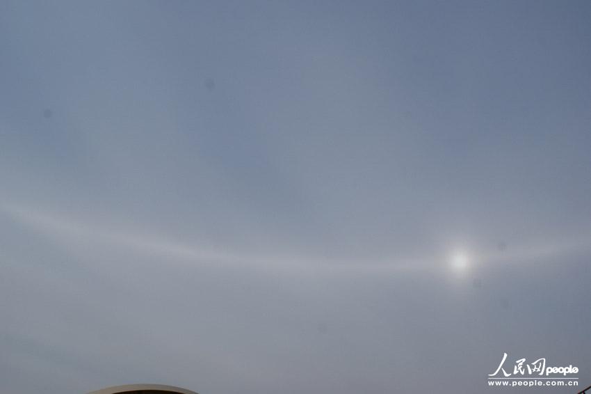 Am Freitag waren drei Sonnen über Chifeng, einer bezirksfreien Stadt im Nordosten des Autonomen Gebietes Innere Mongolei zu sehen. Experten zufolge handelt es sich hier um Sonnenhalos.