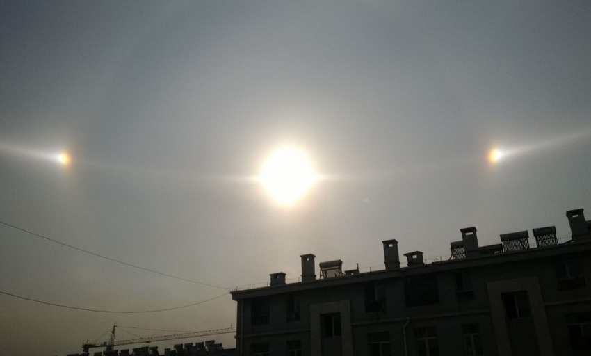 Am Freitag waren drei Sonnen über Chifeng, einer bezirksfreien Stadt im Nordosten des Autonomen Gebietes Innere Mongolei zu sehen. Experten zufolge handelt es sich hier um Sonnenhalos.