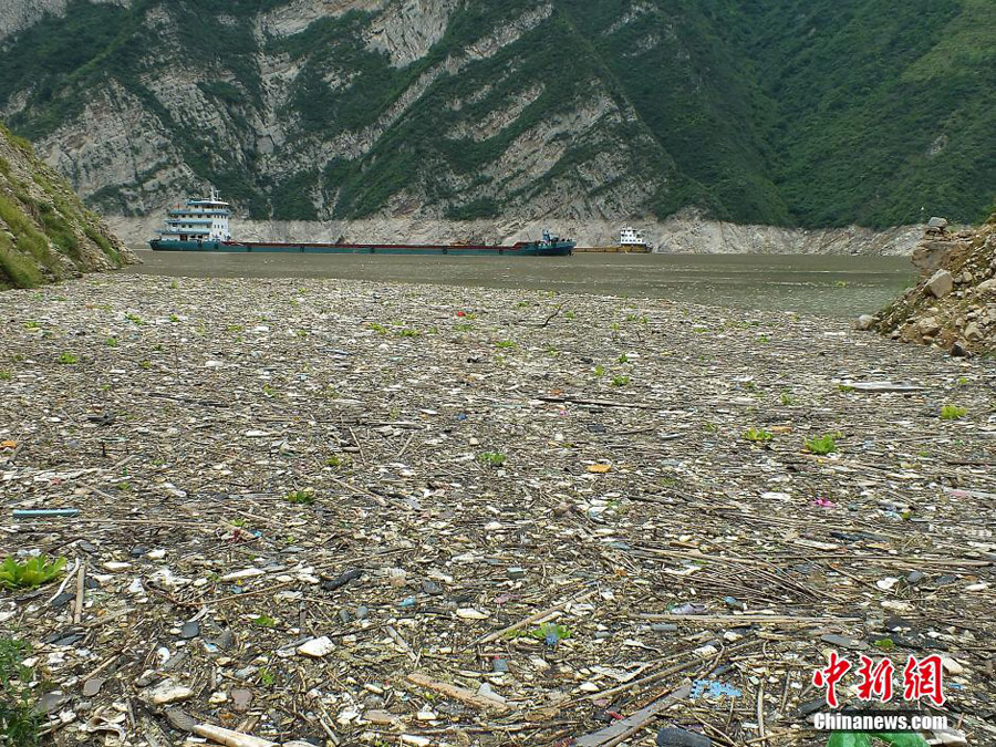 Seit einigen Tagen treiben im Jangtse um den Drei-Schluchten-Damm im Kreisgebiet Zigui der Stadt Yichang der zentralchinesischen Provinz Hubei gewaltige Müllmassen.