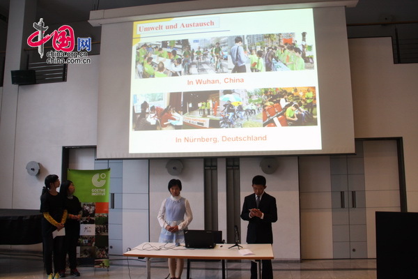 Das Siegerschulpaar – die Wuhan Changqing No. 1 School und das Prickheimer-Gymnasium Nürnberg – wurde für sein intensives Engagement beim Umweltschutz ausgezeichnet. Sie haben sich das Thema "Bike-sharing – Fahrradverleihsysteme in Großstädten: Mobilität – Null Emissionen" ausgesucht. Dabei haben die Schüler aus beiden Ländern gemeinsam viel getan: Sie warben für Radfahren und einen umweltfreundlichen Lebensstil, erstellten Poster, machten Umfragen und Interviews, verfassten Studienberichte u.s.w. "Trotz der anstrengenden Arbeit haben wir uns gefreut, unseren Beitrag zum Umweltschutz zu leisten", sagte ein Vertreter des Siegerteams. Ihre Betreuerin und Deutschlehrerin mit dem Nachnamen Wang ist offensichtlich stolz auf ihre Schüler und sagte china.org.cn, die Kinder seien die jüngsten unter allen Teilnehmern. "Sie haben nur knapp drei Jahre Deutsch gelernt, können sich aber bereits gut mit ihren deutschen Freunden verständigen" sagte Wang.
