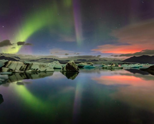 Der Vulkan Holuhraun in Island ist kürzlich ausgebrochen. Das Feuer und das Nordlicht erleuchten gemeinsam den Himmel mit bunten Farben. Dieses spektakuläre Naturwunder wurde von einem 31jährigen Software-Ingenieur namens Stefan Brenner mit der Kamera aufgenommen.