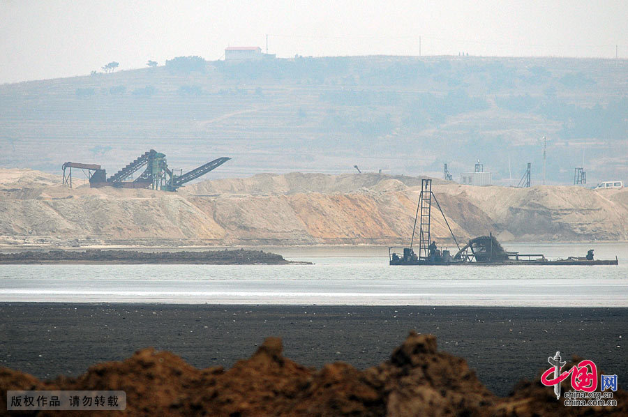 Eine große Fläche des Feuchtgebiets des Yinfu-Reservoirs, der Lebensraum der Zugvögel, wurde durch Baggerarbeiten zerstört.