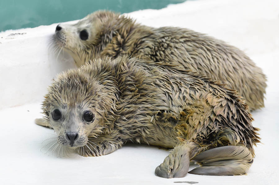 - Eine Largha-Robbe bringt in der Sunasia Ocean World in Liaoning am Morgen des 4. März Zwillinge zur Welt. Es kommt selten vor, dass Largha-Robben Zwillinge gebären.