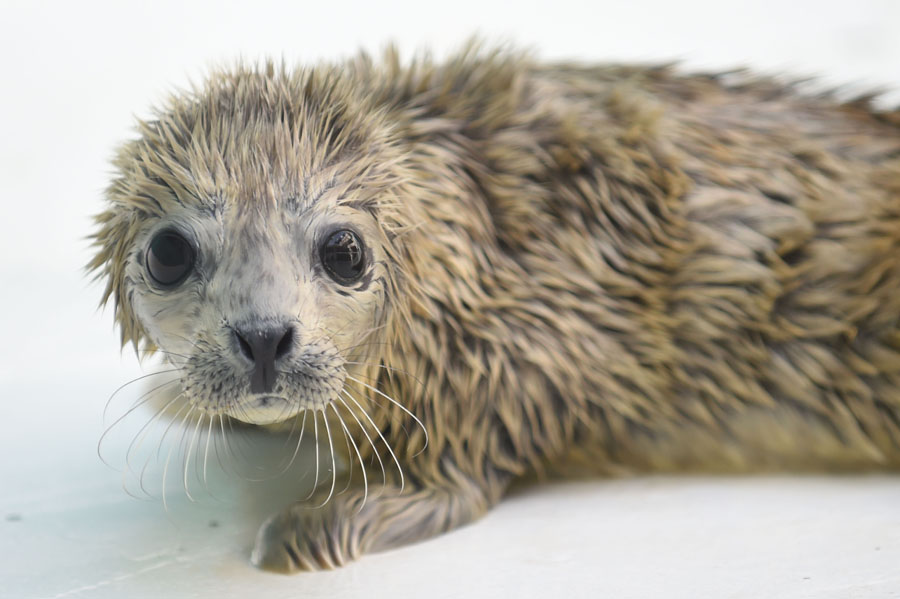 Das jüngere der beiden Largha-Robben-Babys.