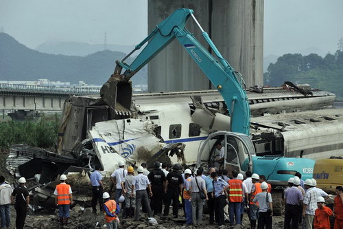 Nach wiederholten Pannen auf den neuen chinesischen Hochgeschwindigkeitsstecken kam es schließlich zum schweren Unfall: Beim Zusammenprall zweier Schnellzüge in Wenzhou wurden 38 Leute getötet und 192 weitere verletzt. Das Eisenbahnministerium entschuldigte sich gestern auf einer Pressekonferenz.