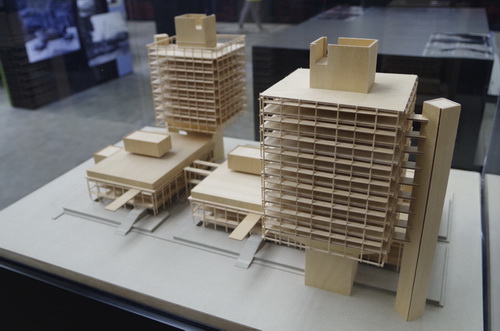 Das Modell vom Gebäudeensemble der ehemaligen Olivetti-Hauptverwaltung Deutschland in Frankfurt am Main.