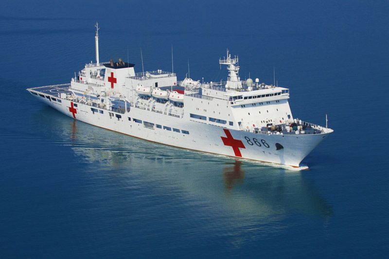 Das Medizinschiff der chinesischen Marine "Daishandao", in Medienberichten häufig "Peace Ark" genannt, ist ein sich bewegendes Krankenhaus der 920-Klasse. Seit 2008 gehört das Schiff zur Ostmeer-Flotte.