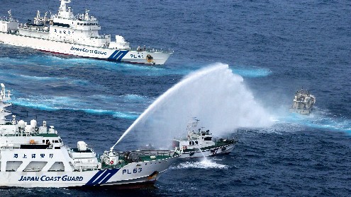 Konflikt: Taiwanesische und japanische Patrouillenschiffe beschießen einander mit Wasserkanonen