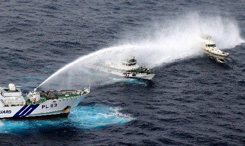 Konflikt: Taiwanesische und japanische Patrouillenschiffe beschießen einander mit Wasserkanonen