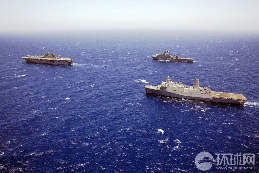 Die US-Marine hat am 16. Juni 2013 ein Manöver im Roten Meer durchgeführt. Daran haben drei große Schiffe, deren Wasserverdrängung jeweils 15.000 Tonnen überschritt, teilgenommen.