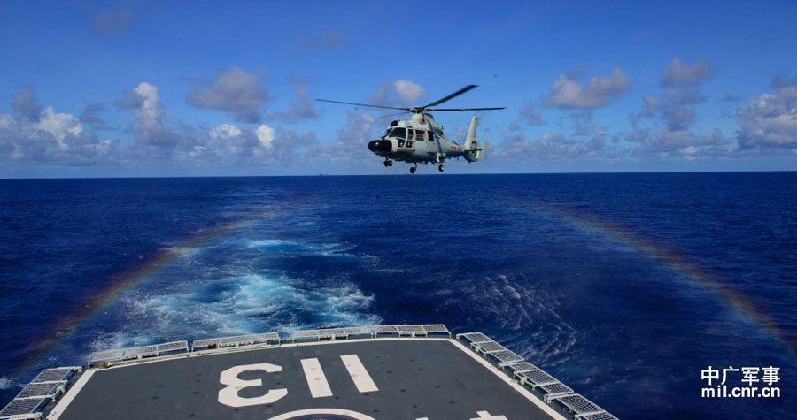 Der Konvoi "113" schickte während der Übung den Raketenzerstörer "Qingdao" zu dem "brennenden" Frachtschiff. Die "Qingdao" mobilisierte einen Hubschrauber und zwei Schnellboote mit Technikern und Ärzten. Die Hubschrauberbesatzung hatte die Aufgabe, die Situation an Bord des brennenden Schiffes zu beurteilen und die ins Wasser gesprungenen Verletzten zurück zum Kriegsschiff zu transportieren. Die Techniker halfen indes der Restbesatzung beim Löschen des Feuers und den Reparaturarbeiten, während die Ärzte die Verletzten betreuten.
