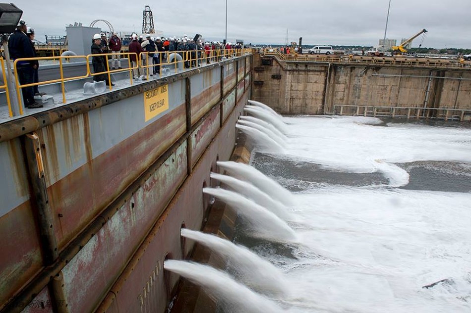 Flugzeugträger USS Gerald R. Ford schwimmt im Dock