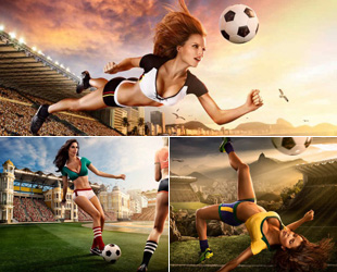 Die Fußballweltmeisterschaft 2014 in Brasilien kommt immer näher. Der amerikanische Fotograf Tim Tadder hat mit seiner Kamera zwölf klassische Torschuss-Positionen dokumentiert, die von Fußball-Models präsentiert werden. Für seine Fotos hat Tadder einzigartige Blickwinkel ausgewählt und eine Schnappschuss-Technik verwendet, sodass die Fotos nicht nur die Eigenschaften der Frauen, sondern auch ihre dynamische Schönheit darstellen. Die Kombination von großen Stadien unter freiem Himmel und schönen Landschaften als Hintergrund zeigt, dass der Fußball überall im brasilianischen Leben existiert.