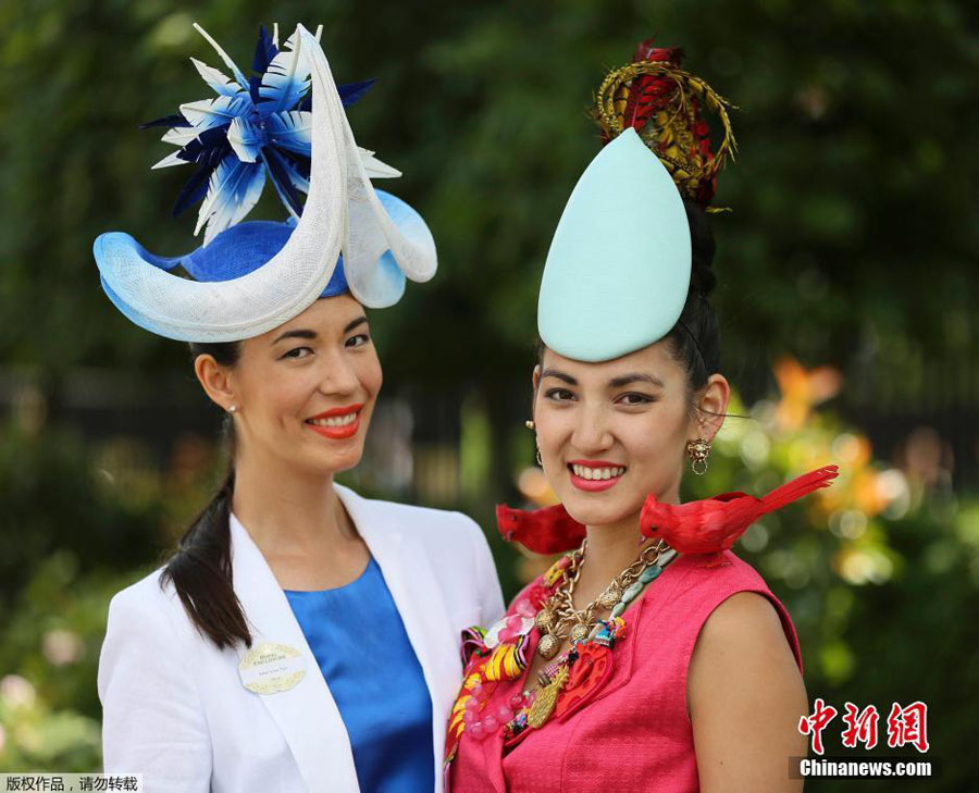 Am ersten Tag des Pferderennens"Royal Ascot" in der Grafschaft Berkshire, südlich von Windsor, konnte man zahlreiche Damen mit ausgefallenden und spektakulären Hüten beobachten.