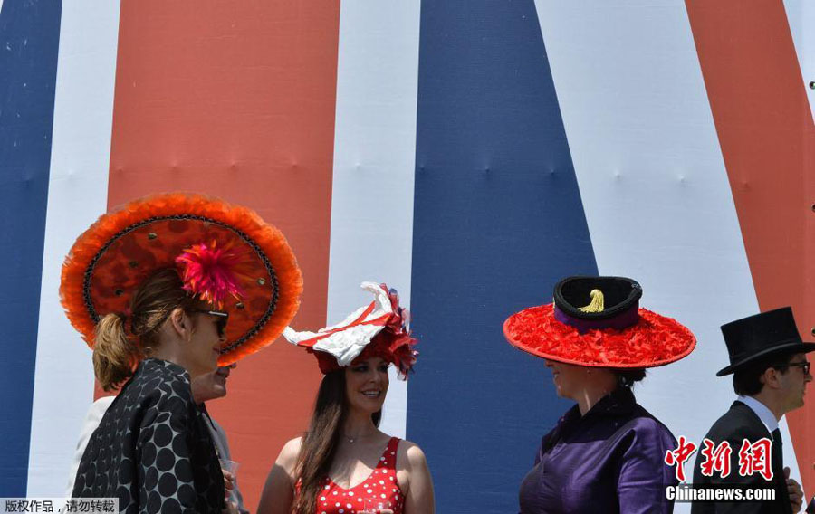 Am ersten Tag des Pferderennens"Royal Ascot" in der Grafschaft Berkshire, südlich von Windsor, konnte man zahlreiche Damen mit ausgefallenden und spektakulären Hüten beobachten.