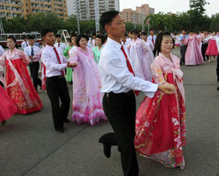 Am Donnerstag wurde eine Gedenkfeier für das ehemalige nordkoreanische Staatsoberhaupt Kim Jong-il veranstaltet. Zahlreiche Schüler und Schülerinnen tanzten auf dem Kim-Il-sung-Platz im Innenstadtbezirk Chung-guyŏk von Pjöngjang.