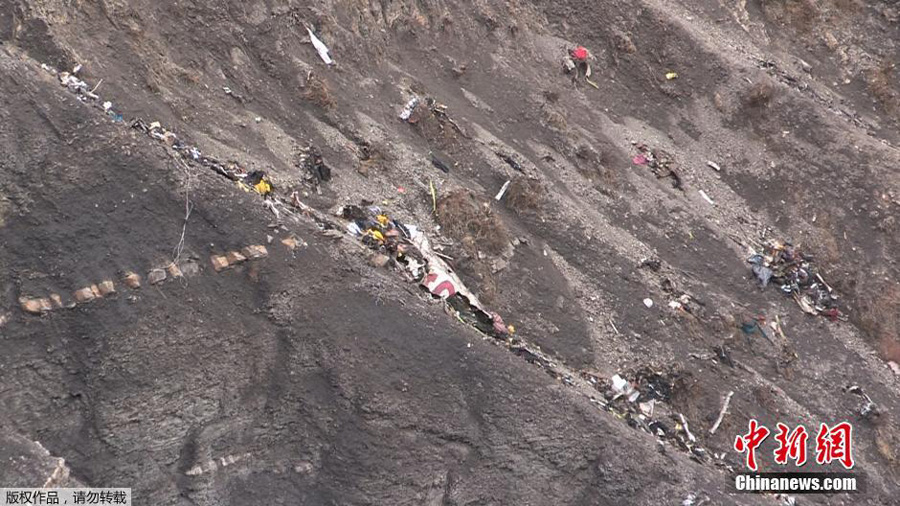 - Trümmerfeld von der verünglückten Germanwings-Maschine