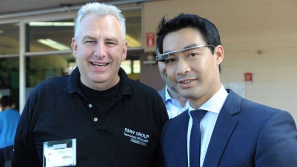 21日,罗斯勒参观了位于芒廷维尤(Mountain View)的一所德国学校,并在那里遇到了宝马美国公司技术部主管迪克•洛斯贝格(Dirk Rossberg)。17日以来,他一直在测试谷歌眼镜应用于汽车技术的可能性。当天,这位来自慕尼黑的父亲正来此接儿子放学。因为他知道罗斯勒会来这所学校参观,并且想要试戴这款高科技眼镜。于是,就有了此次“巧遇”。