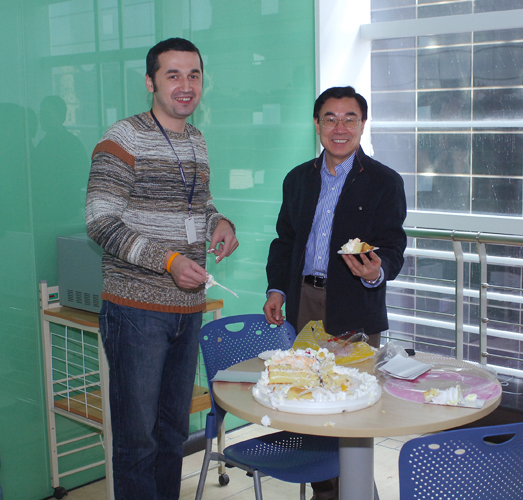 Huang Youyi, Präsident von China.org.cn, feiert beim Geburtstag von russischen Experten Андрей mit.