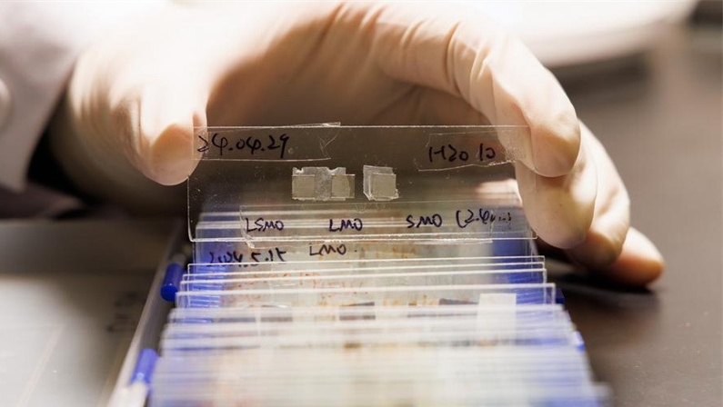 Muster eines ferroelektrischen Kondensators in einem Labor des Instituts für Physik der Chinesischen Akademie der Wissenschaften in Beijing, der Hauptstadt Chinas, am 21. Januar 2026. (Xinhua/Jin Liwang)