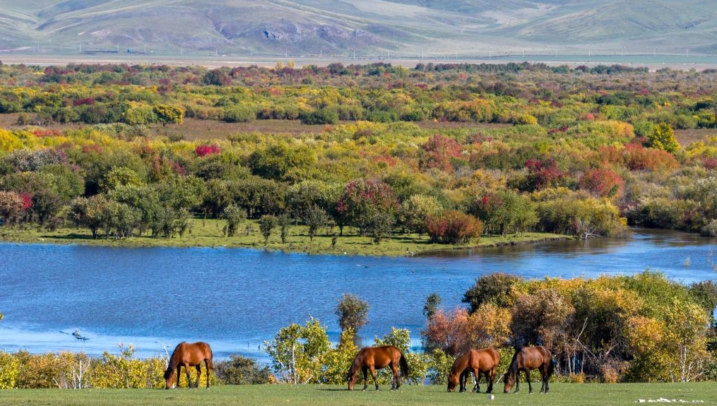 Ein Blick auf Feuchtgebiet rund um Ergune-Fluss in Chinas Innerer Mongolei.