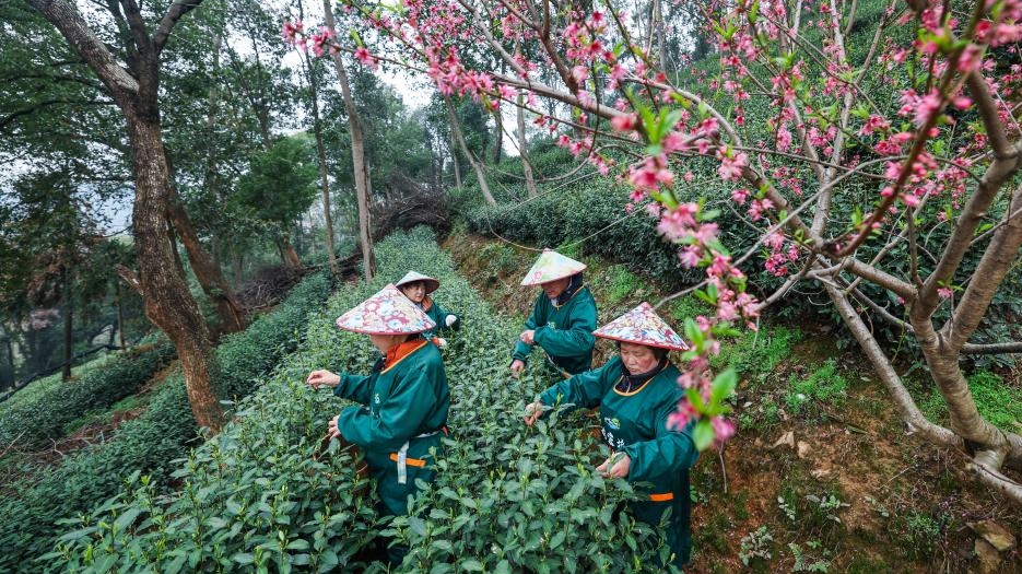 Frühjahrs-Teeernte im Kreis Sanjiang in Südchina