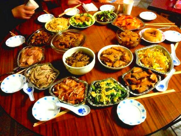 Für die Chinesen ist das Familienessen am Silvesterabend ein wichtiges Ritual während des Frühlingsfests. Ganz gleich, wo sie sind, die meisten Chinesen schaffen es, für dieses wichtigste aller Abendessen im ganzen Jahr heimzukehren.Zu den traditionellen Speisen für das Familienessen am Silvesterabend gehören gefüllte Teigtaschen, Klebreisbällchen, Fisch und Reiskuchen, die jedoch nicht vollständig aufgegessen werden soll, denn das Wort für "Reste" ist homophon zum Wort für "Wohlstand".