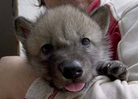 Ein vier Wochen alter Timberland-Wolf wird in einem Wildpark beim kleinen australischen Dorf Ernstbrunn gehalten. Die Ortschaft liegt etwa 54 Kilometer im Norden von Vienna. 28 Mai 2009.