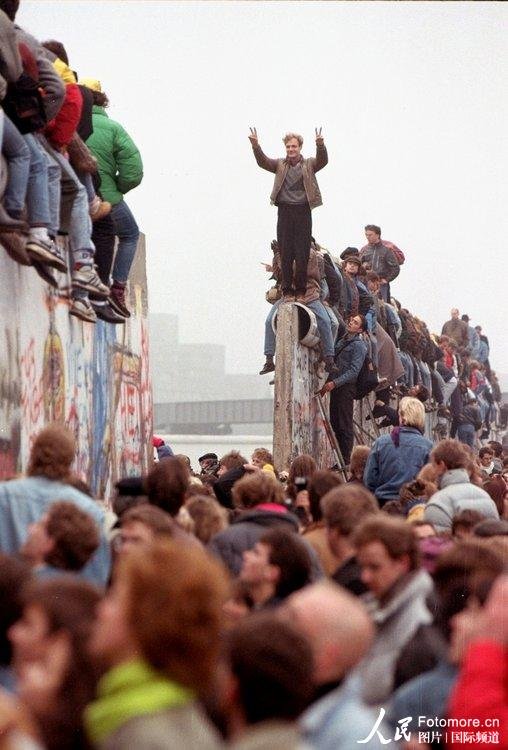 Das Archivbild von 1989: Die jubelnden Menschen auf der Berliner Mauer.