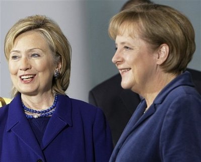 Die Bundeskanzlerin Angela Merkel (links) und die US-Außenministerin Hillary Clinton nahmen an der Feier teil.