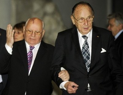 Der russische Ex-Präsident Michail Gorbatschow (links) und der frühere deutsche Außenminister Hans-Dietrich Genscher nahmen am Fest teil.