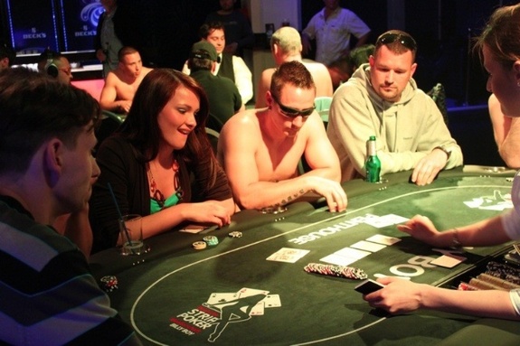 In Dresden werden die ersten Strip-Poker-Meisterschaften, organisiert von der Kodomherstellungsfirma Billy Boy, veranstaltet (12. Mai 2010). Die Bewerber versuchten, ihre Kleidung so weit wie möglich anzubehalten, um eine Reise nach Las Vegas zu gewinnen. (Sohu/ Xinhua)