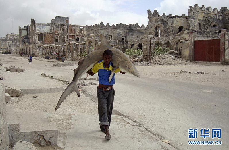 Ein Junge trägt einen toten Hai durch die Straßen von Mogadischu. Foto vom Reuters-Reporter Omar Feisal steht auf dem ersten Platz der Kategorie Daily Life Single.