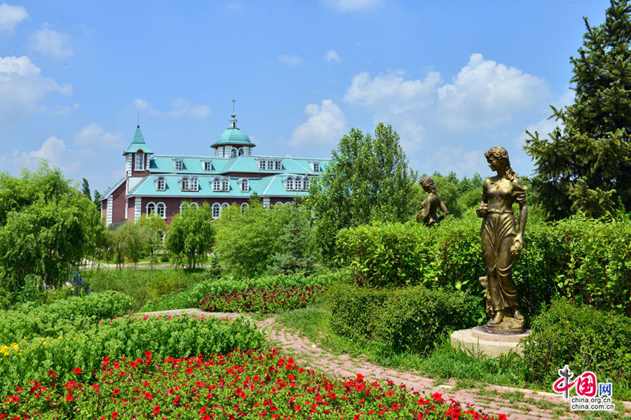 Volga Manor am Ufer des Ashi im Bezirk Xiangfang in Harbin erstreckt sich mit seinen fantastischen Ausblicken, weiten Gärten und Feuchtgebieten auf eine Landfläche von 600.000 Quadratmetern.