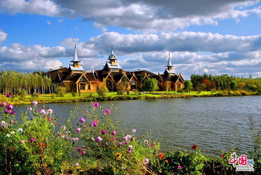 Volga Manor am Ufer des Ashi im Bezirk Xiangfang in Harbin erstreckt sich mit seinen fantastischen Ausblicken, weiten Gärten und Feuchtgebieten auf eine Landfläche von 600.000 Quadratmetern.