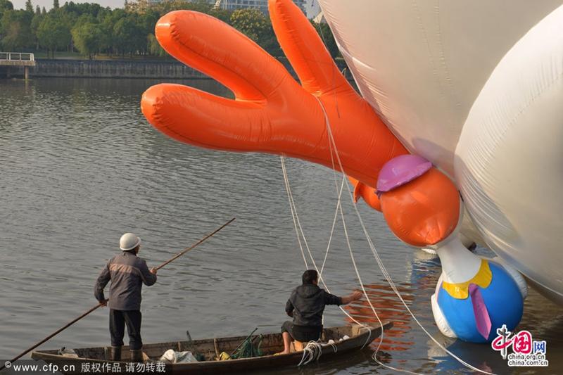 Yiwu: Riesige Gummi-Gans vom Wind "umgepustet"