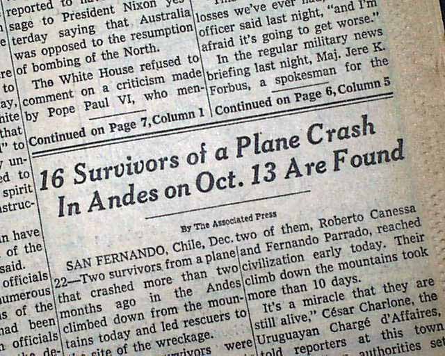Bei Flug 571 handelt es sich um ein weiteres Flugzeug, das in den Tagen, als die Technik im Cockpit die Piloten noch nicht so gut informieren konnte, den niedrigen Wolken und hohen Bergen zum Opfer fiel. Das Flugzeug war auf dem Weg von Uruguay nach Santiago in Chile und stürzte in den Anden ab. Als es die Spitze eines Berges berührte, verlor das Flugzeug beide Tragflächen. Von den 45 Personen an Bord überlebte etwa die Hälfte nicht nur den Absturz, sondern auch die folgenden 72 Tage, die sie auf dem Berg festsaßen. Am Ende fanden die Retter 16 Überlebende, die zugaben, das Fleisch anderer Passagiere gegessen zu haben, um zu überleben.