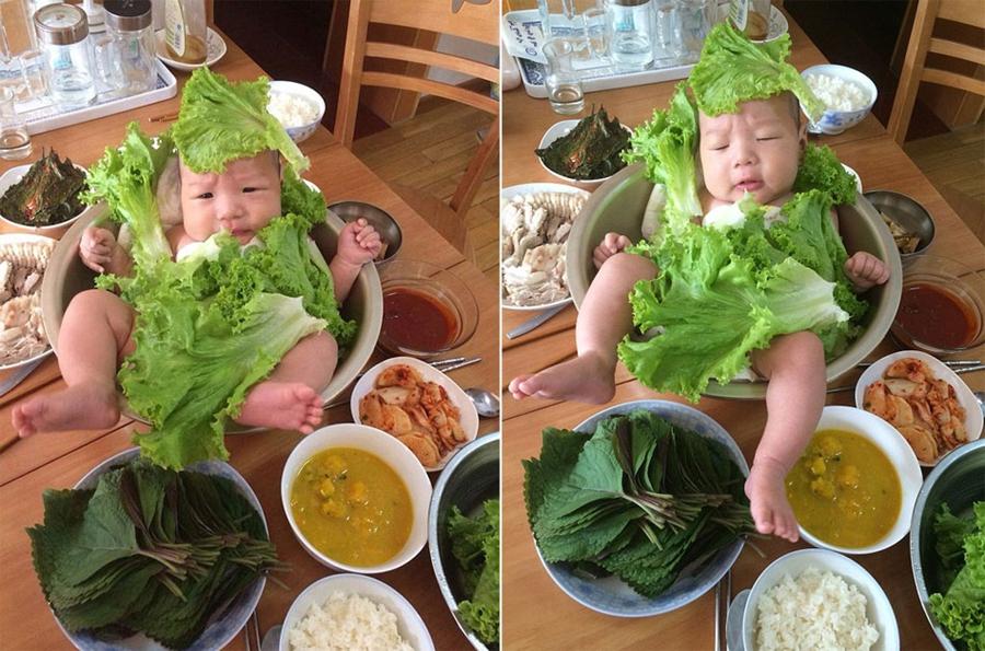 Ein chinesischer Internetnutzer hat eine Bilderserie mit dem Titel "Babysalat" online gestellt. Auf den Fotos kann man sehen, dass der Köper des Babys mit Gemüse bedeckt und in eine Schüssel gesetzt wird. Das Baby sieht nicht so froh aus, versucht zu stehen, aber es scheitert. Die Mutter des Babys findet das Bild interessant. Aber viele Chinesen kritisieren, dass es "falsch" und "dumm" sei.