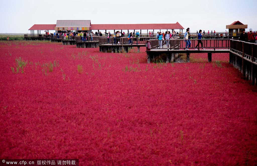 - Wie in jedem Herbst zieht derzeit der berühmte rote Strand in Panjin in der nordostchinesischen Provinz Liaoning zahlreiche Touristen an. Dabei handelt es sich um einen Strauch namens Soden.