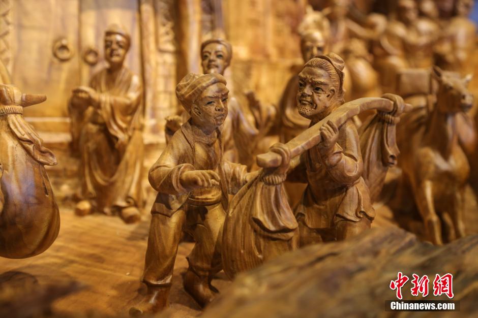 Heute ist ein riesiges Holzschnitzkunstwerk mit dem Namen„die Qingming-Rolle“ in Minhou in der südostchinesischen Provinz Fujian ausgestellt worden. Die 32 Meter lange, 2,2 Meter breite und 2,8 Meter hohe Schnitzerei aus Baumwurzelholz wurde von dem Künstler Yu Chunzhou geschaffen.