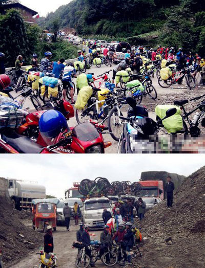 Es gibt auf der Straße von der Provinz Sichuan nach dem chinesischen Autonomen Tibet manchmal sogar regelrechte Verkehrsstaus wegen zu vieler Fahrräder.