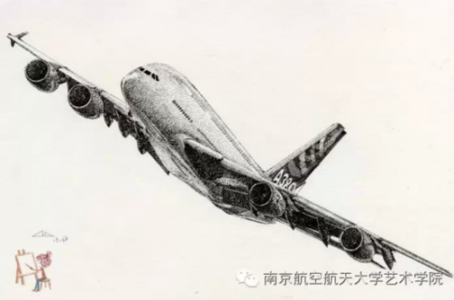 Studentin zeigt Talent mit handgezeichneten Flugzeugen