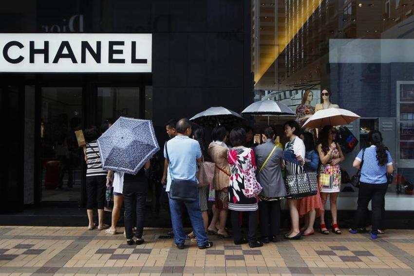 Viele Festlandchinesen stehen vor einem Chanel-Laden in Hongkong Schlange. Diese Leute haben einen großen Beitrag zur lokalen Wirtschaftsentwicklung geleistet.