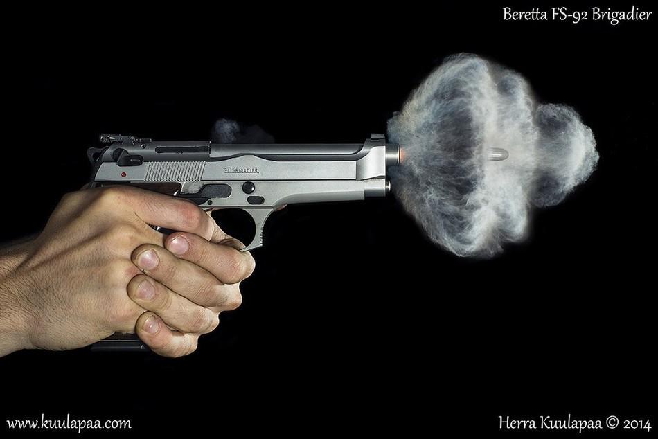 Schlagwörter: Schuss Pistole Schusswaffe Ballistikfotografie Hochgeschwindigkeitskamera