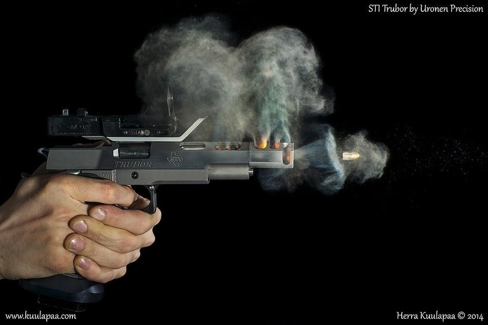 - Der Moment, in dem eine Patrone aus dem Lauf einer Schusswaffe abgefeuert wird, ist extrem kurz. Es ist deswegen auch extrem schwer, diesen Vorgang auf Fotos aufzunehmen.